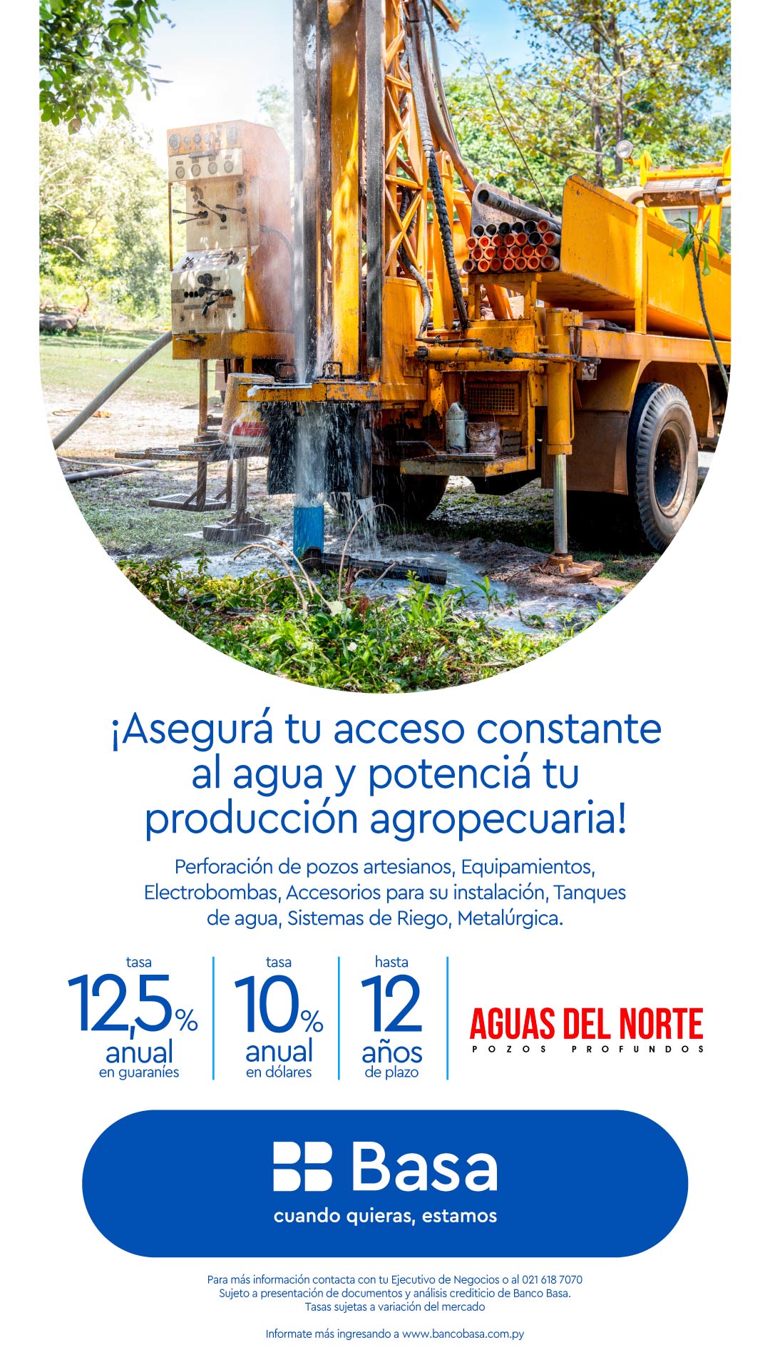 Con la alianza entre Banco Basa y Aguas del Norte asegurá tu acceso constante al agua y potencia tu producción agropecuaria.
