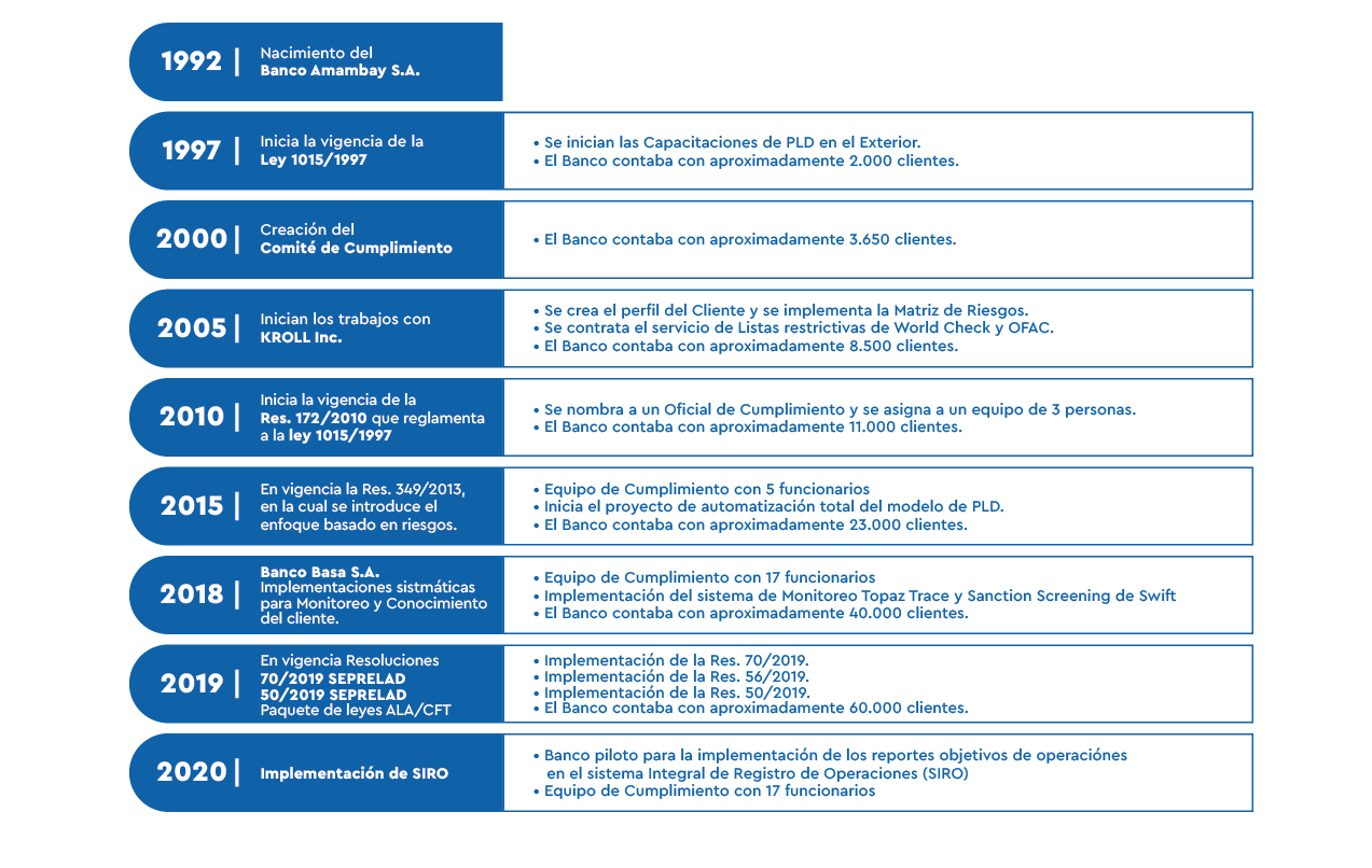El Banco Basa S.A. dispone de controles, políticas y procedimientos adecuados, con un enfoque basado en riesgo, alineado a lo dispuesto en la normativa local y mejores prácticas internacionales en la materia, que le permiten ser cabal soporte en los esfuerzos de prevención y control.